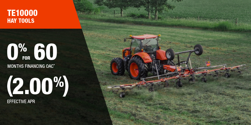 *For all offers: Prices and payments include freight and other applicable fees (including environmental fees, administration fees, set-up fees, and dealer fees). Taxes, delivery fees, insurance and registration are extra. Dealer may sell for less. Dealer order/trade may be necessary (but may not be available in all cases). Some restrictions apply. Offers valid only at participating dealers in Canada and are subject to change, cancellation or extension at any time without notice or obligation. Minimum down payment of 10% required for financing offers on turf and agricultural products. Specifications, features, illustrations and equipment shown are based on the latest available information at the time of publication. Some models are shown with optional accessories available at extra cost. Although descriptions are believed to be correct, accuracy cannot be guaranteed. We reserve the right to make changes at any time, without notice or obligation to specifications, accessories, materials, models, prices, payments and other information. Offer valid until January 12, 2026. See your participating Kubota dealer or visit www.kubota.ca for complete details.